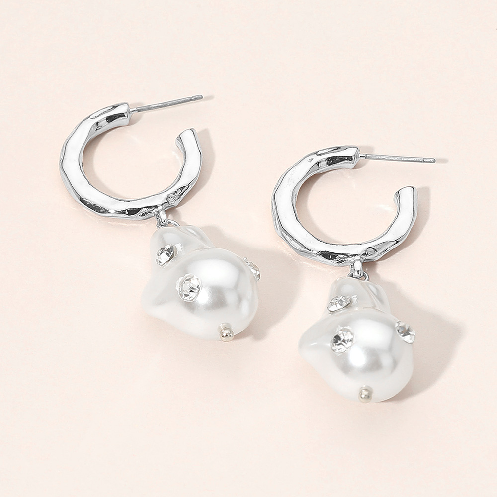 Details • Size : 0.8" X 2" • Post Back • Elegant hoop drop earrings featuring an organically shaped pearl charm accented with subtle crystal details for refined sparkle. This design balances modern structure with soft dimension, making it ideal for everyday wear, gifting, boutiques, and trend-driven accessory collections seeking versatile statement pieces. • Lead and Nickel Compliant