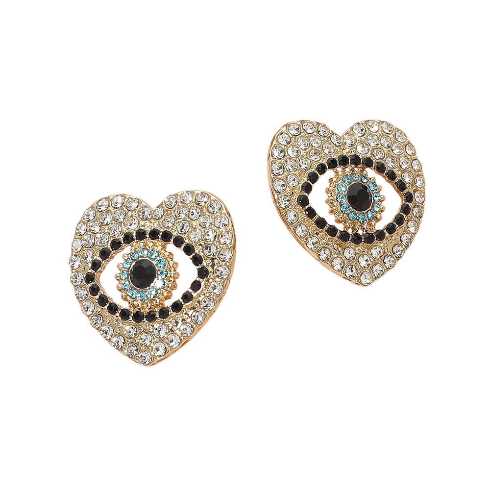Rhinestone Pave Heart Evil Eye Earrings Rhinestone Pave Heart Evil Eye Earrings
