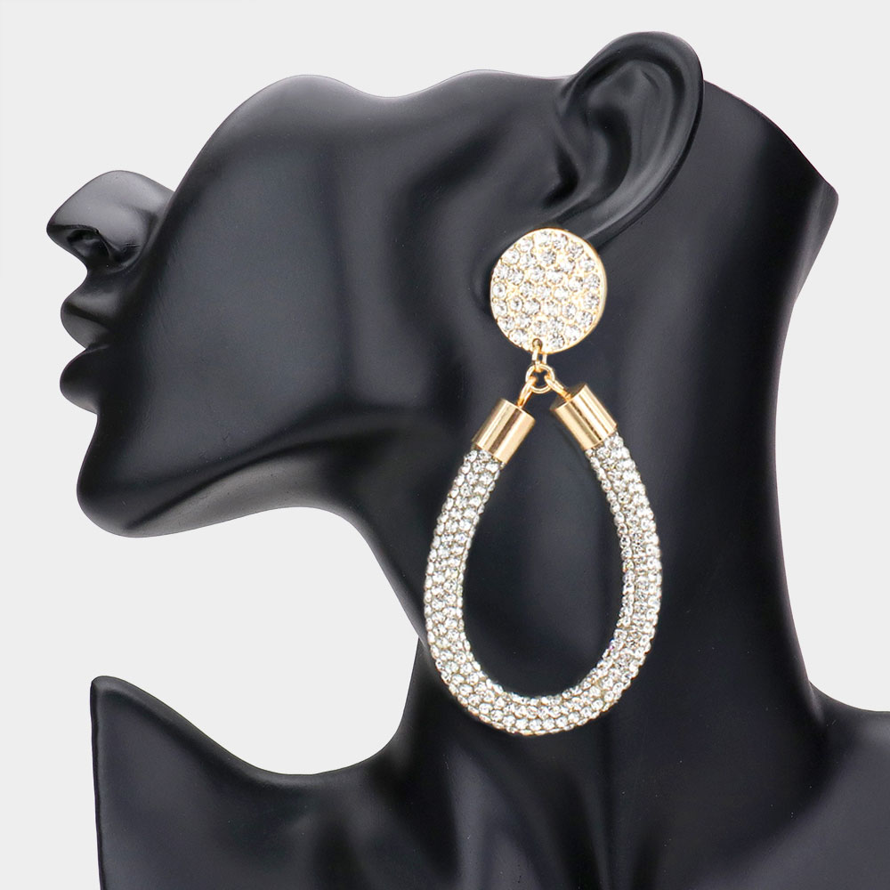 Rhinestone Pave Open Teardrop Dangle Earrings Rhinestone Pave Open Teardrop Dangle Earrings