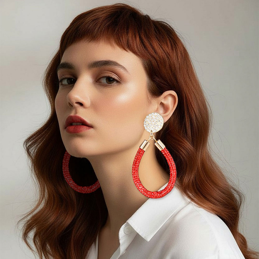 • Elevate your look with these oval crystal drop statement earrings featuring a sleek stud top and a sparkling, textured hoop design. Perfect for special occasions or everyday glam, they add eye-catching movement and modern elegance to any outfit or gift-ready style.