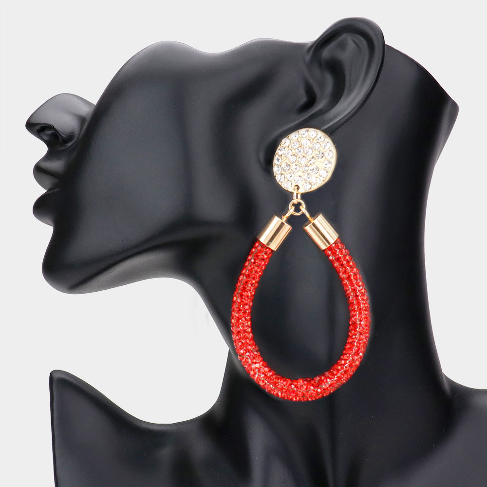 Rhinestone Pave Open Teardrop Dangle Earrings