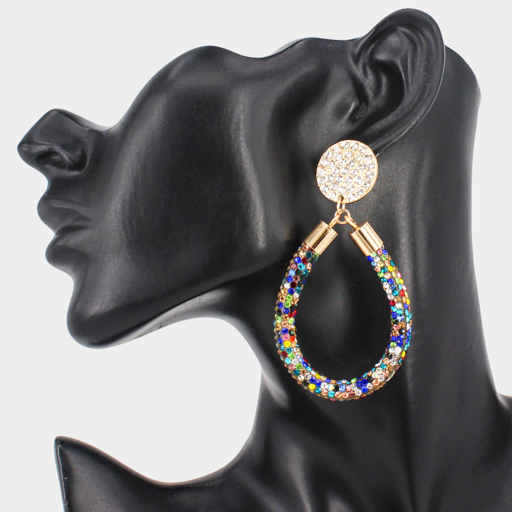 Rhinestone Pave Open Teardrop Dangle Earrings Rhinestone Pave Open Teardrop Dangle Earrings