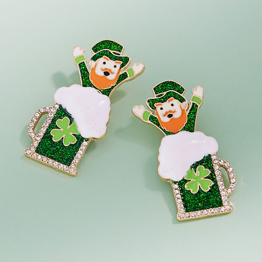 Rhinestone Rim Leprechaun Beer Mug Earrings