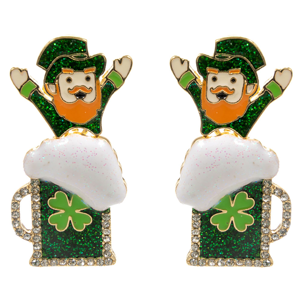 • Festive drop earrings showcasing playful leprechaun characters paired with frothy mug charms for bold seasonal style. Designed for lightweight comfort and eye-catching movement, they’re perfect for themed events, celebrations, party outfits, and novelty gifting while adding a fun, spirited finishing touch.