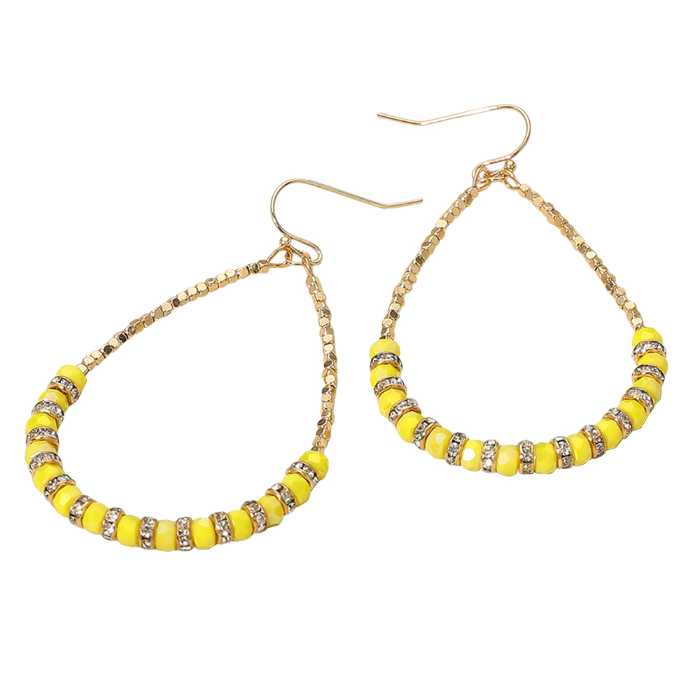 Rhinestone Ring Faceted Beaded Open Teardrop Dangle Earrings Rhinestone Ring Faceted Beaded Open Teardrop Dangle Earrings