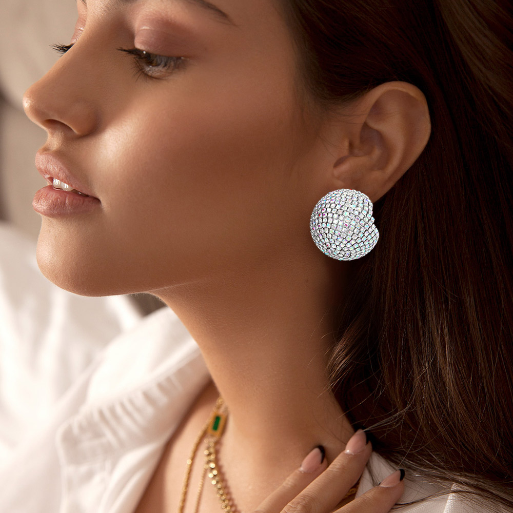 Rhinestone Studded Ball Earrings