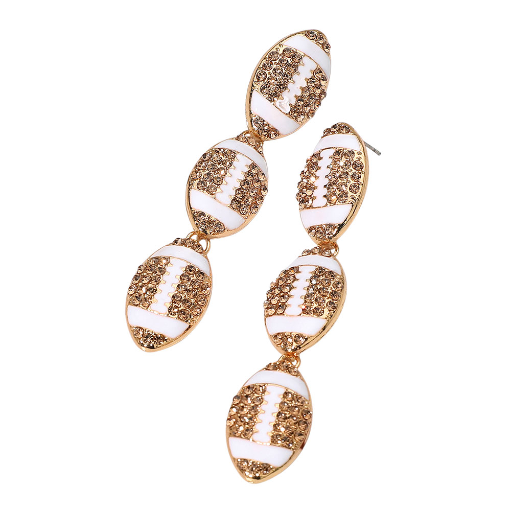 Details • Size : 0.7" X 3.25" • Post Back • Make a statement with these sparkling game day drop earrings designed with bold, sporty flair. Their unique, multi-drop style adds movement and shine, making them the perfect choice for cheering on your team or adding a fun, confident touch to your casual and event looks. • Lead and Nickel Compliant