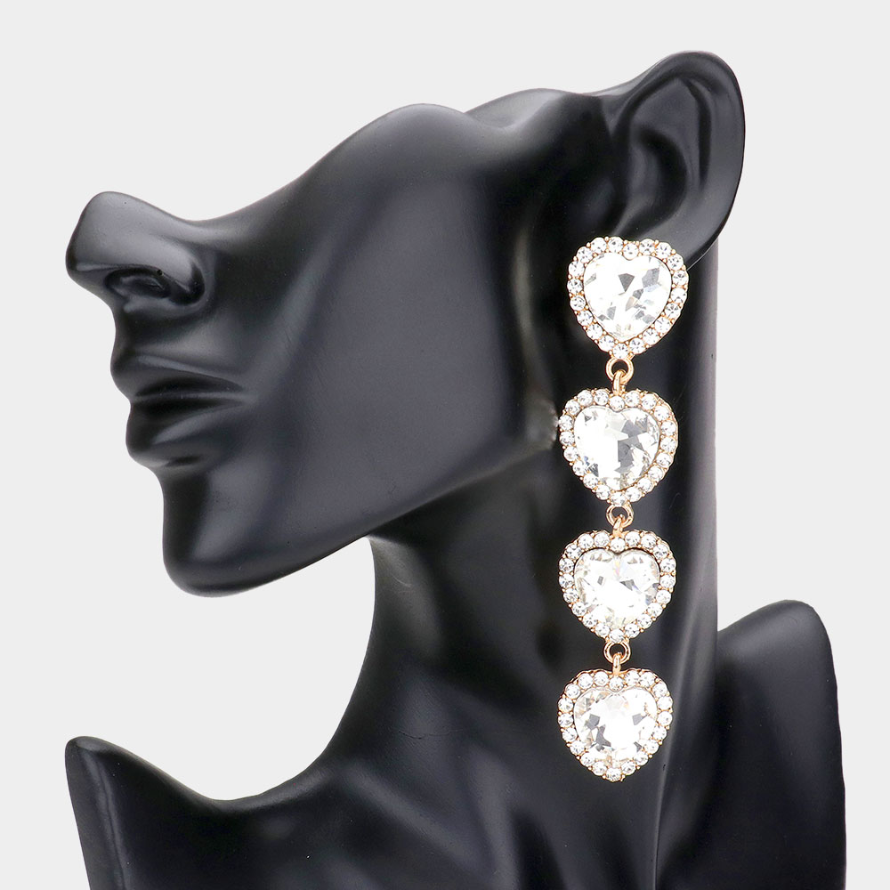 Pave Crystal Stone Heart Dangle Earrings