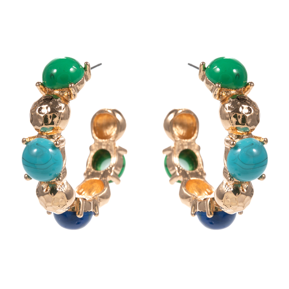 Details • Size : 1.7" X 1.7" X 0.4" • Titanium Post Back • These beaded hoop earrings feature a bold curved silhouette accented with mixed shape bead details for a playful yet elevated statement. Designed with dimensional texture and eye-catching form, they add personality to everyday outfits and styled looks. A versatile accessory ideal for boho-inspired collections, fashion-forward assortments, or gifting, offering a unique balance of structure and charm. • Hypoallergenic • Lead and Nickel Compliant