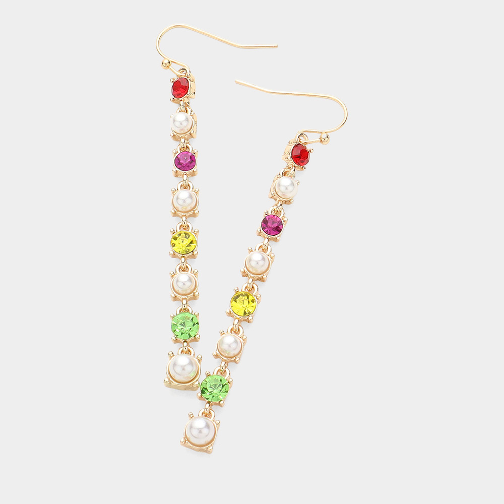 Round Rhinestone Pearl Cluster Link Dropdown Earrings