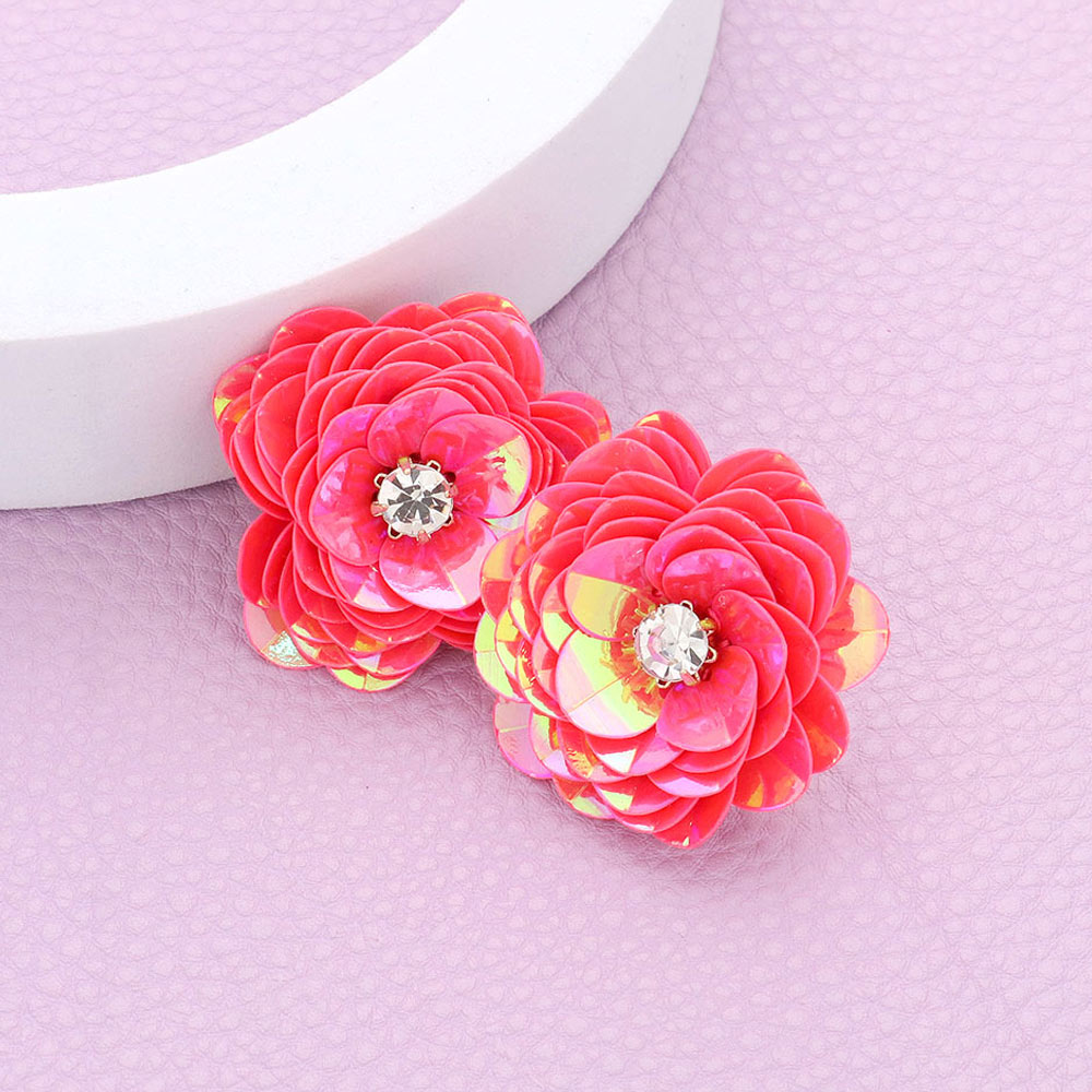 Flower Accented Irregular Rectangle Stone Link Dangle Earrings