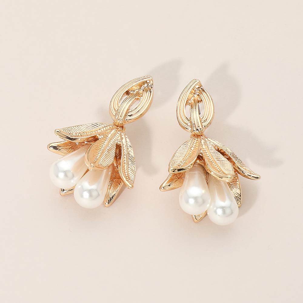 Pearl Charm Floral Chain Drop Earrings