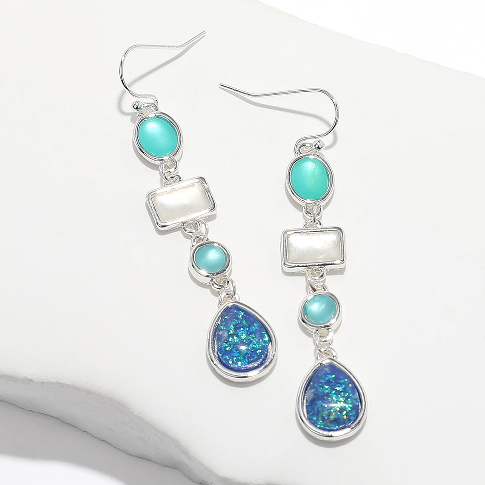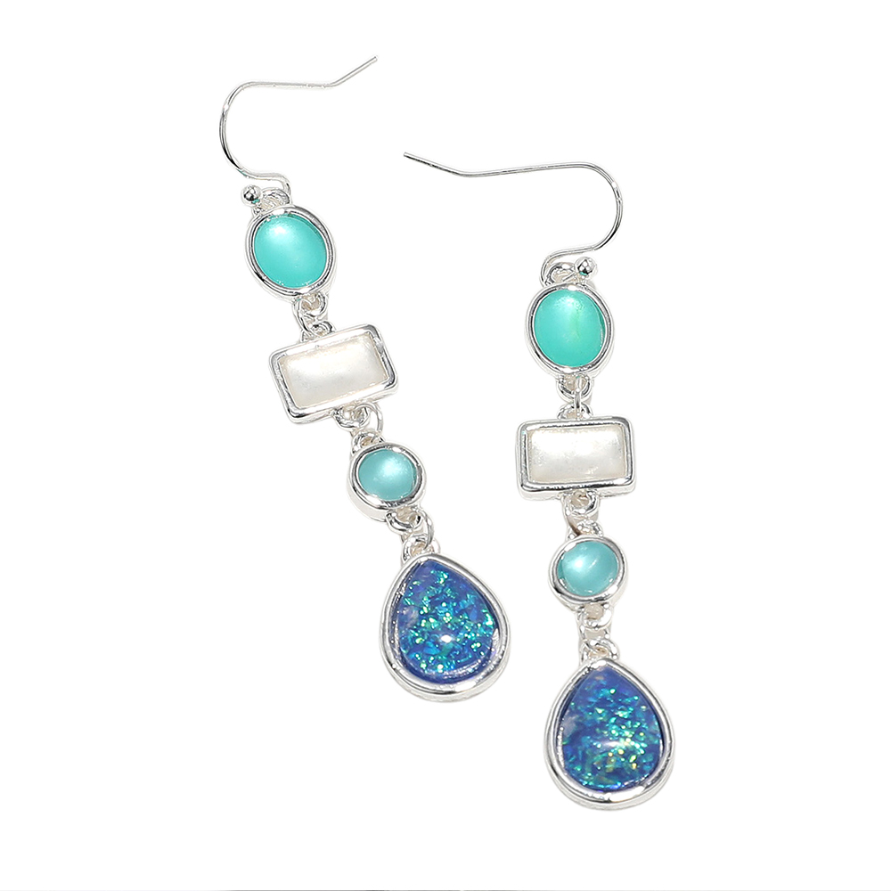 Sea Glass Cluster Link Dropdown Earrings