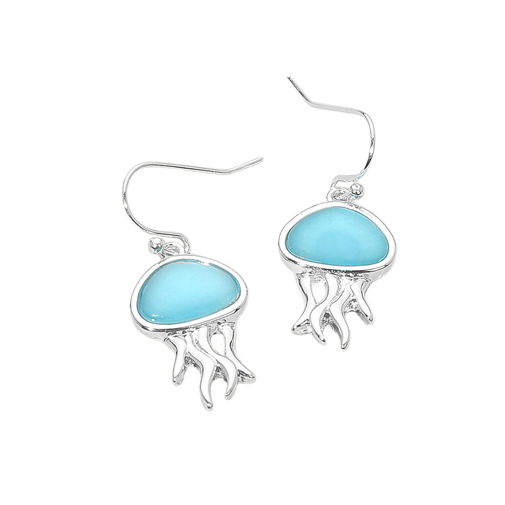 Details • Size : 0.75" X 1.3" • Fish Hook Back • Whimsical jellyfish dangle earrings featuring a smooth domed center and flowing tentacle details. Designed with lightweight movement and a classic hook style, these earrings add playful charm to summer looks, beach themes, coastal boutiques, resort wear collections, and gift-ready accessory assortments. • Lead and Nickel Compliant