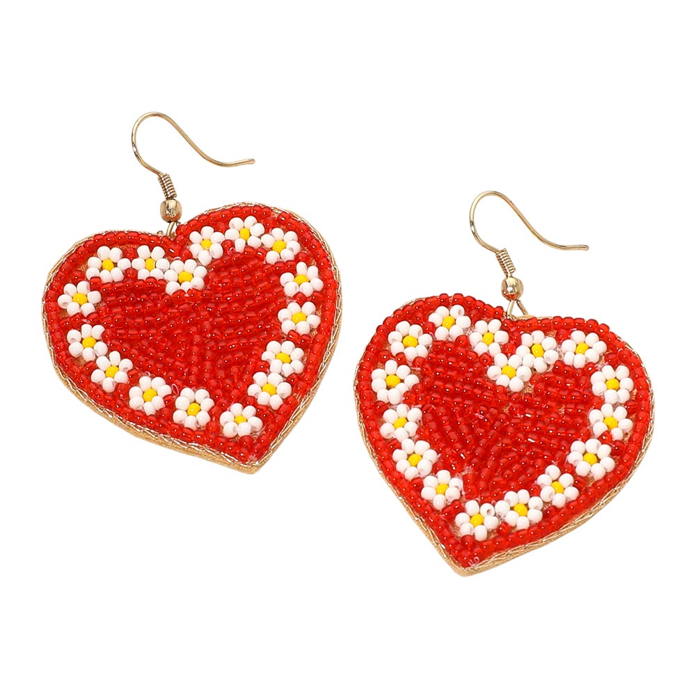 Seed Beaded Heart Dangle Earrings