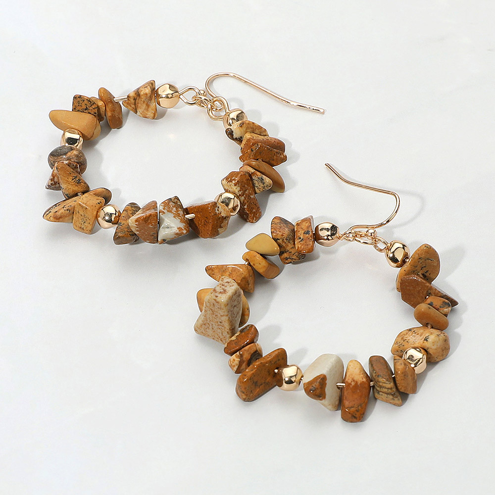 Semi Precious Natural Stone Beaded Ring Dangle Earrings