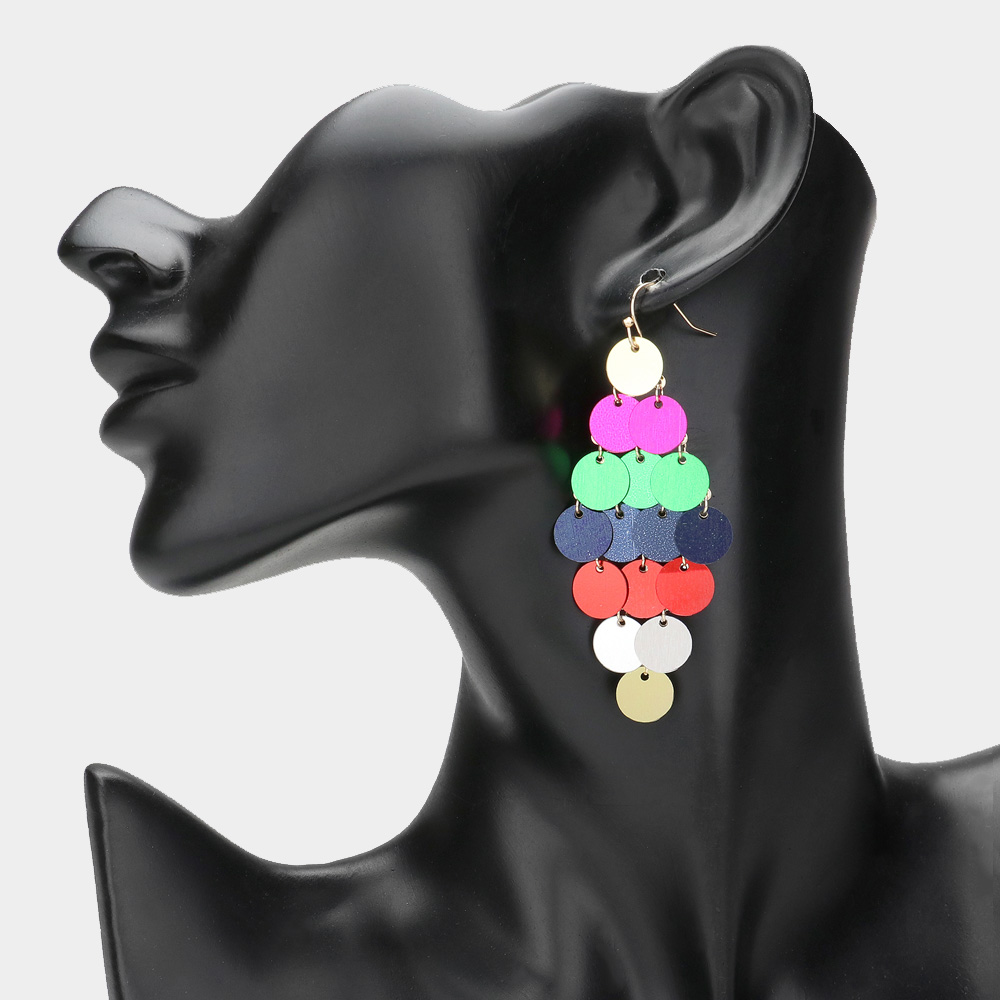 Square Crystal Bezel Natural Stone Drop Link Dangle Earrings