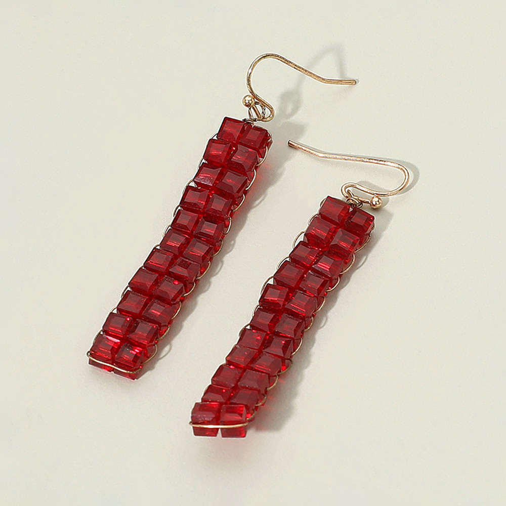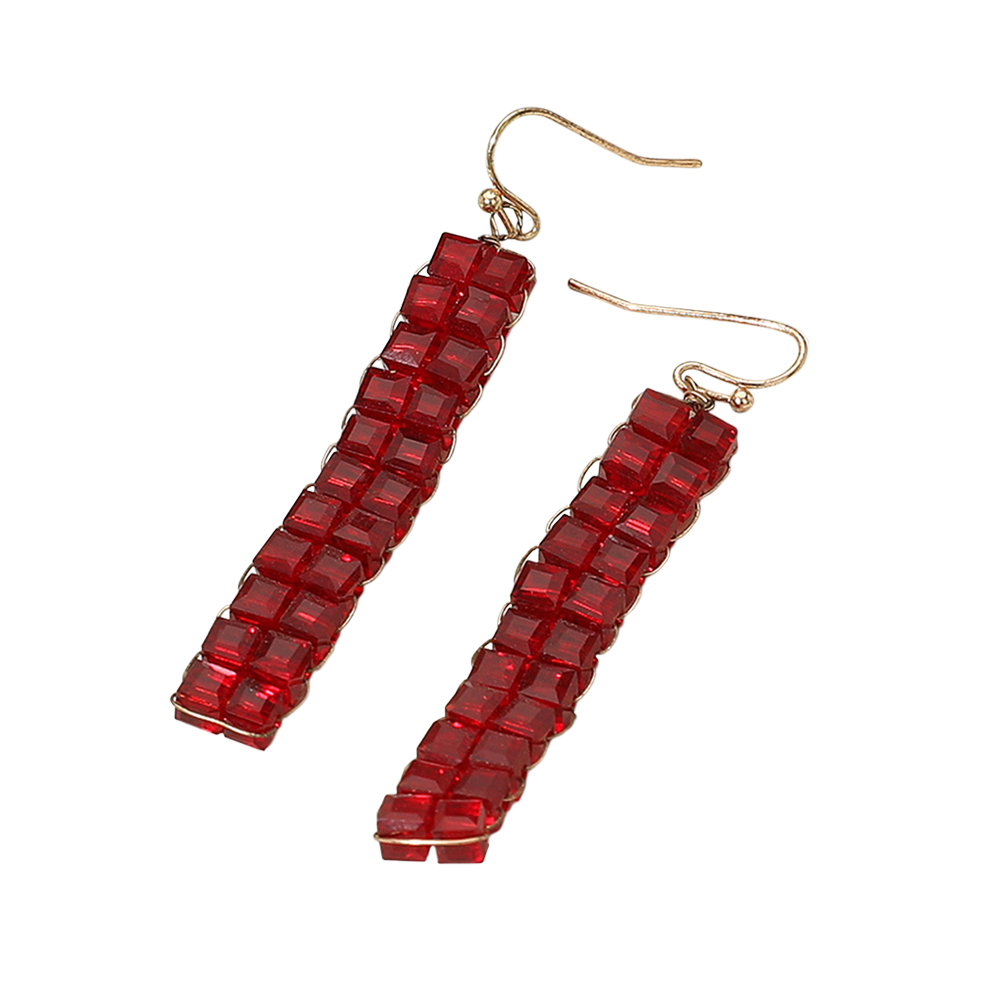 Details • Size : 0.3" X 2.5" • Fish Hook Back • Add a modern edge to your look with these geometric drop earrings featuring stacked square bead detailing. Lightweight yet striking, they bring a bold and contemporary flair to any outfit, perfect for casual styling, evening wear, or making a statement at special occasions. • Lead and Nickel Compliant