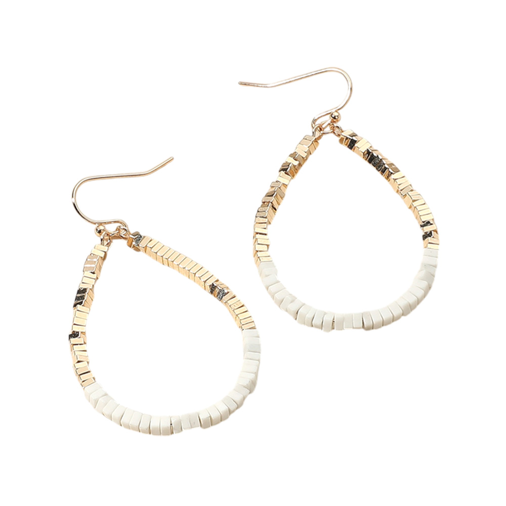Square Beaded Open Teardrop Dangle Earrings