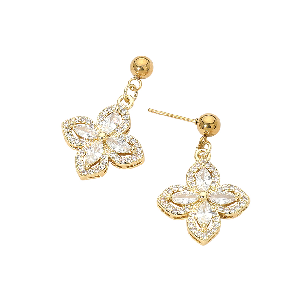 • Elegant floral cz drop earrings featuring a layered petal design with shimmering accents that add graceful movement and refined shine. Designed to elevate everyday outfits and special occasion looks, these earrings are a versatile choice for boutiques, gifting, and customers seeking timeless, feminine jewelry.