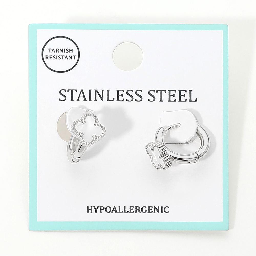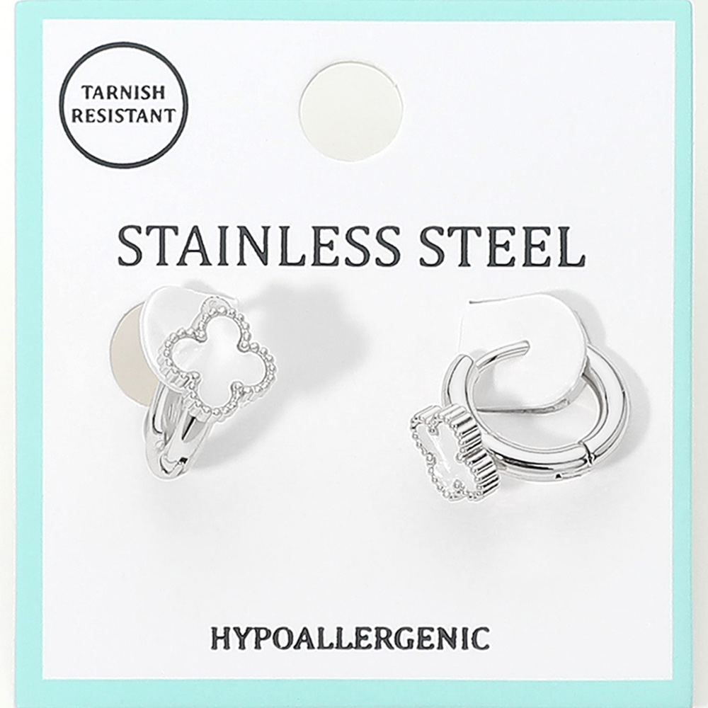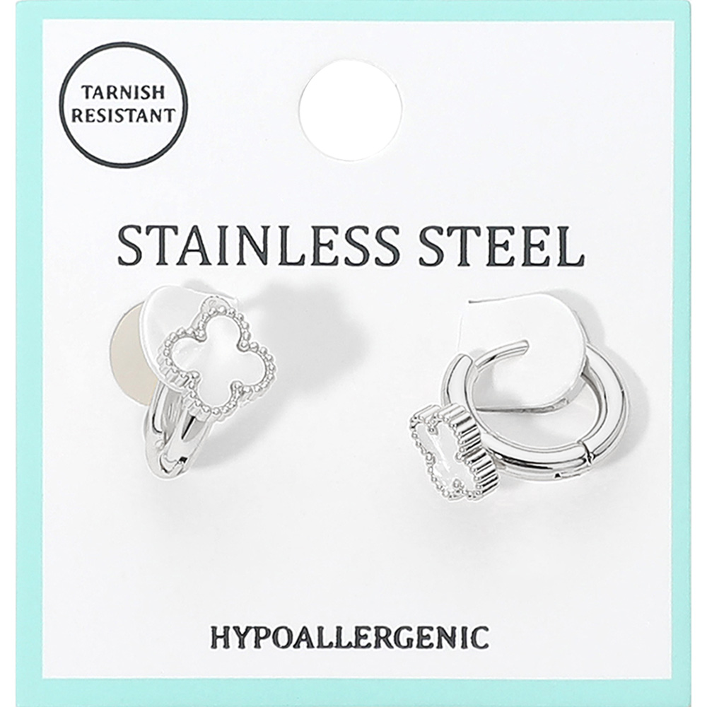 Stainless Steel Quatrefoil Accent Huggie Hoop Earrings Stainless Steel Quatrefoil Accent Huggie Hoop Earrings Stainless Steel Quatrefoil Accent Huggie Hoop Earrings