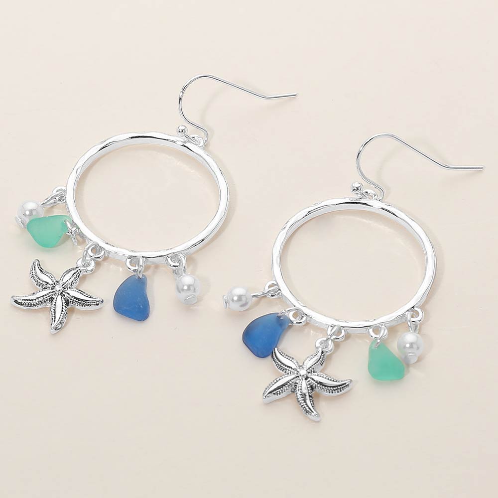 Details • Size : 1" X 2.2" • Fish Hook Back • These hoop drop earrings feature a playful starfish charm accented with smooth bead details for a seaside-inspired statement. Designed with lightweight movement and an open hoop silhouette, they offer comfortable wear while adding charm and personality. Perfect for vacation styling, summer outfits, or everyday looks, these earrings bring a fun yet polished touch to any accessory collection. • Lead and Nickel Compliant