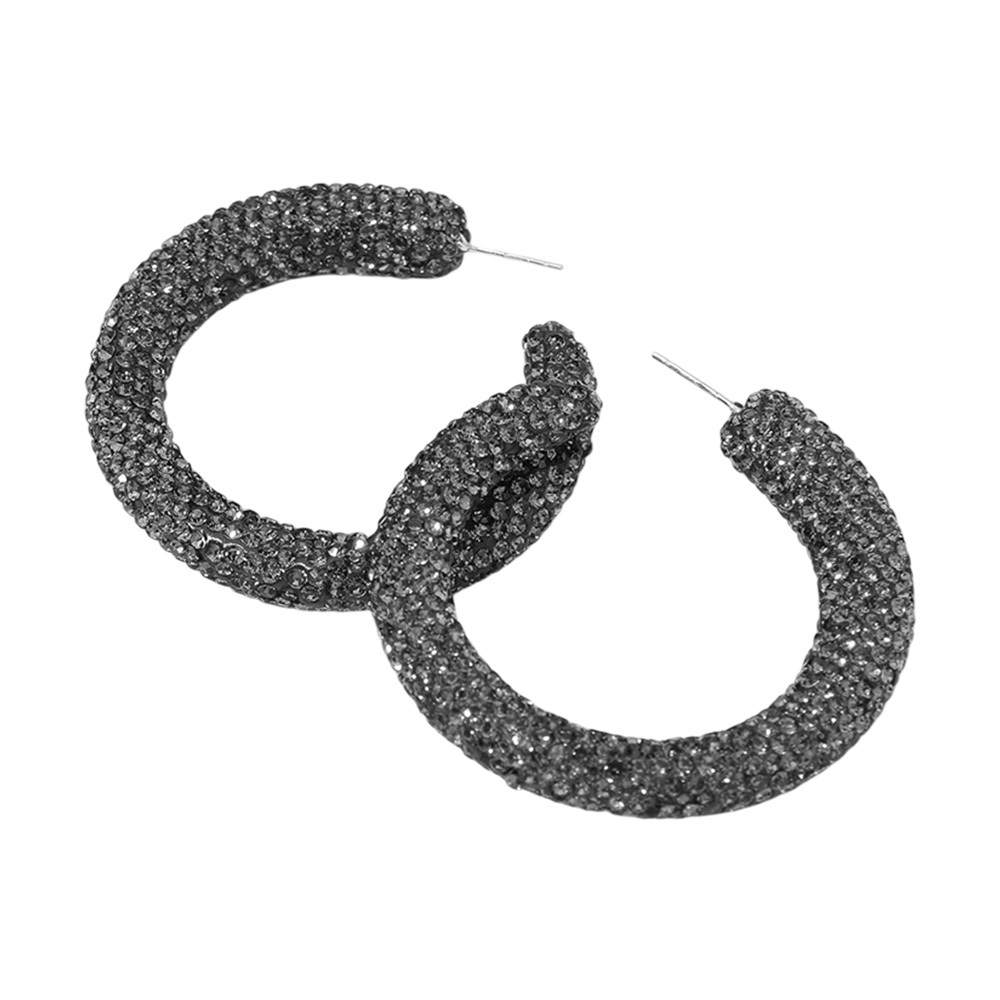 Sterling Silver Post Rhinestone Studded Hoop Earrings