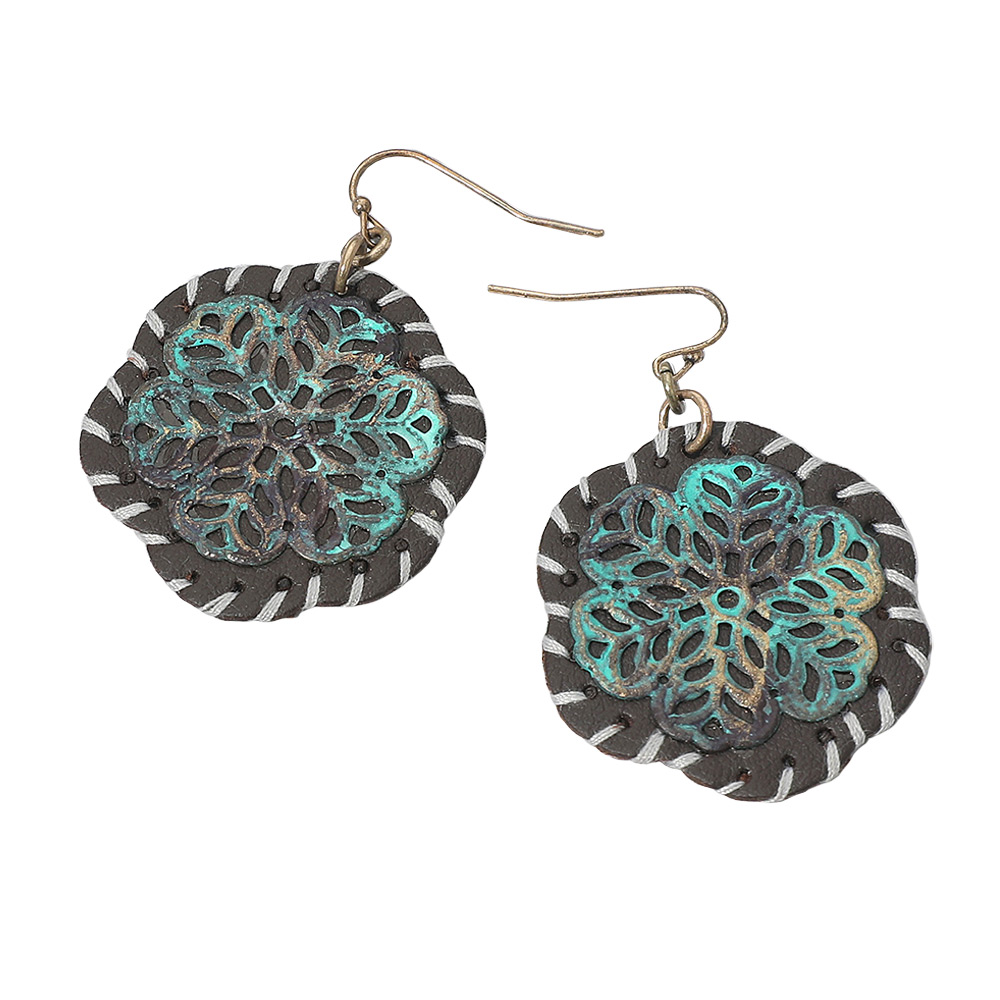 Stitched Faux Leather Layered Metal Floral Dangle Earrings Stitched Faux Leather Layered Metal Floral Dangle Earrings Stitched Faux Leather Layered Metal Floral Dangle Earrings