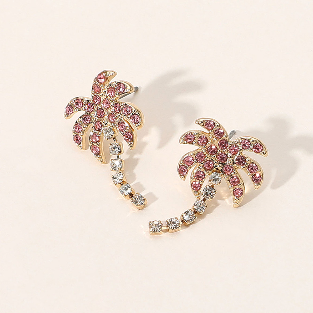 • Playful palm tree stud earrings adorned with sparkling accents, perfect for adding a fun and tropical vibe to any look. Ideal for vacation styling or everyday wear, these earrings bring a touch of whimsy and shine to your accessory collection.