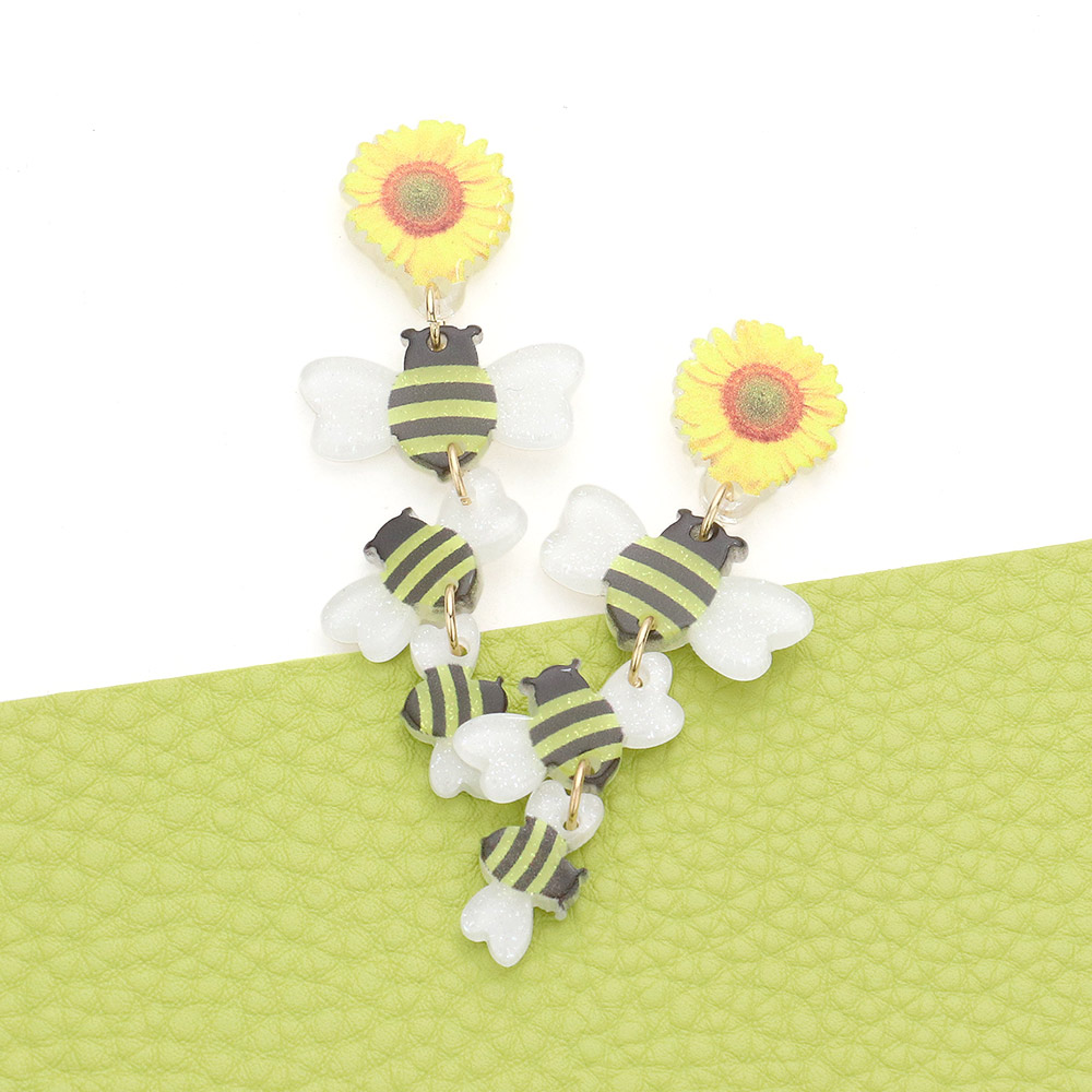 Sunflower Bumble Bee Resin Dropdown Earrings