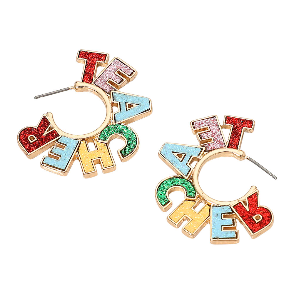 • Fun letter-accent hoops spelling “TEACHER,” designed to celebrate educators with playful statement style. Perfect for classroom outfits, spirit days, appreciation gifts, and everyday wear to show pride in teaching with personality and charm.