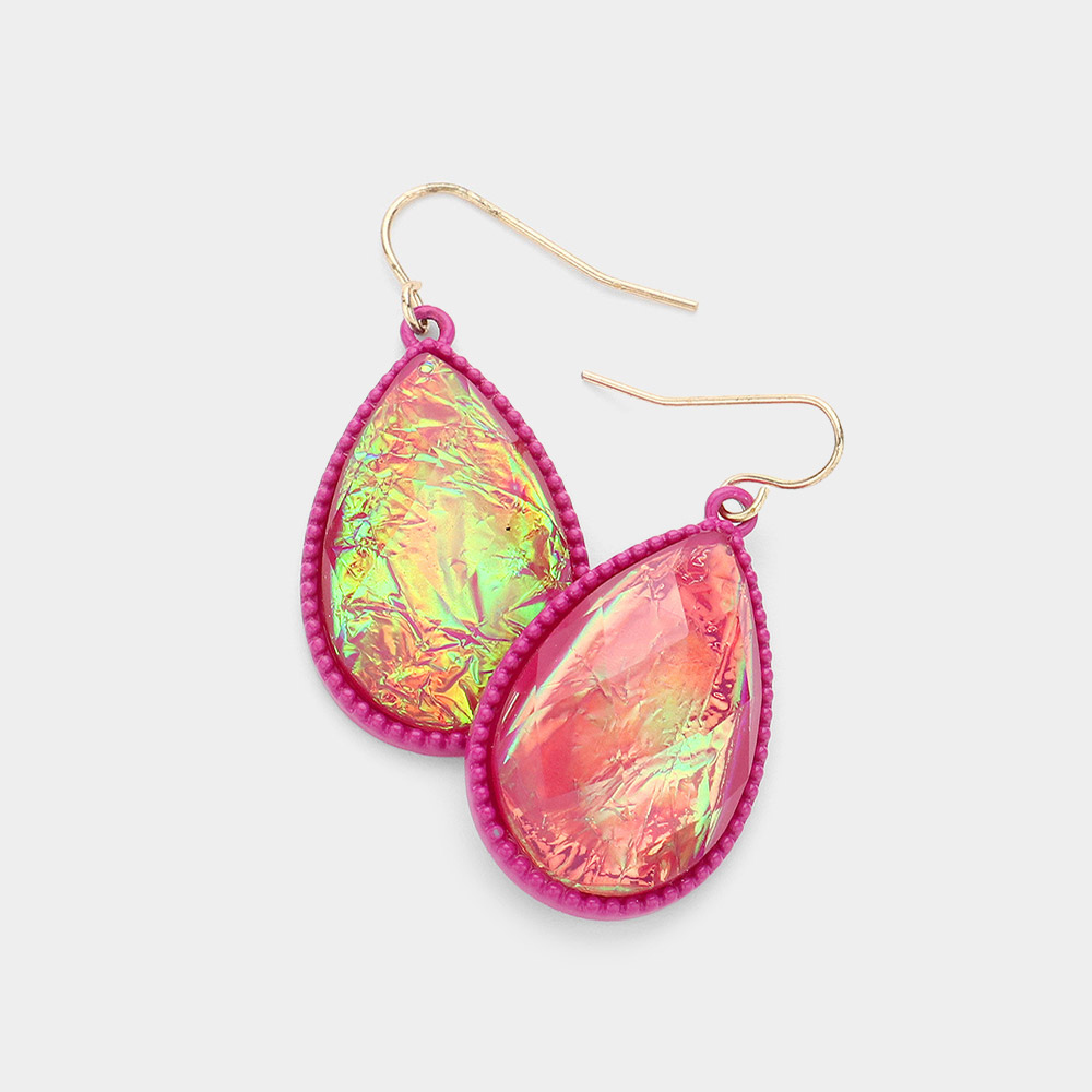 Ornate Top Faceted Teardrop Stone Dangle Clip On Evening Earrings