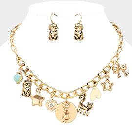 Star Centered Enamel Heart Round Stone Pendant Necklace