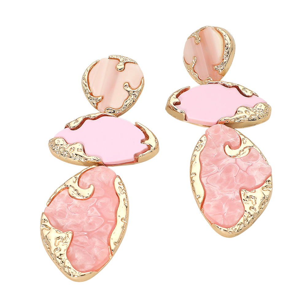 Textured Metal Frame Abstract Celluloid Acetate Plate Link Drop Statement Earrings