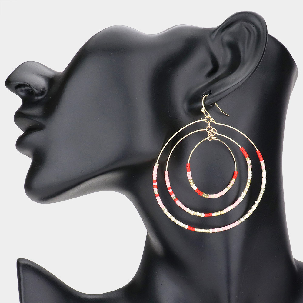 Tiny Beaded Triple Open Circle Layered Dangle Earrings