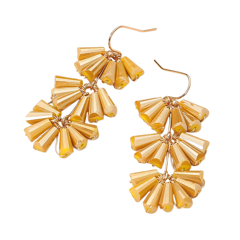 Details • Size : 0.75" X 2" • Fish Hook Back • Make a bold impression with tiered cluster dangle earrings designed with unique geometric beads. Lightweight and eye-catching, these earrings bring playful movement and contemporary flair to any outfit, perfect for elevating casual and evening looks. • Lead and Nickel Compliant