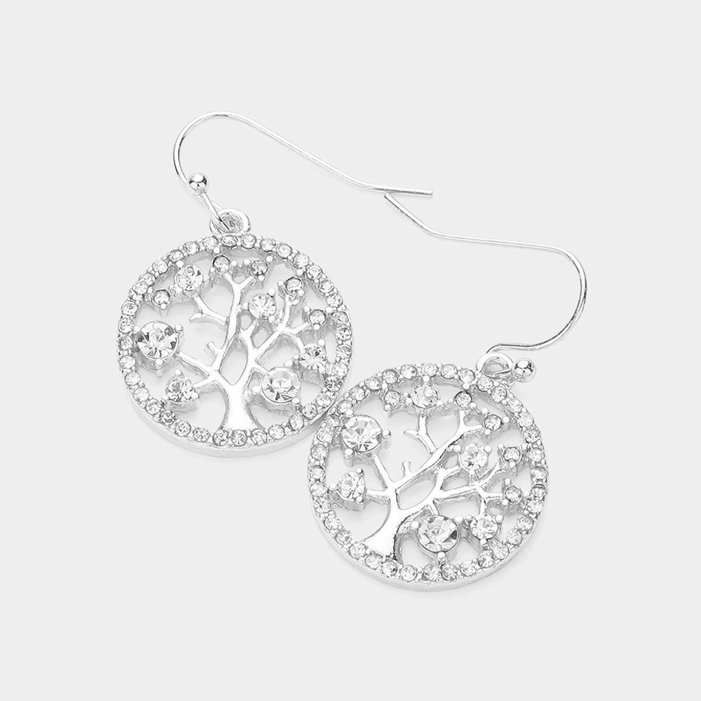 Stainless Steel Stone Paved Tree of Life Pointed Stretch Bracelet