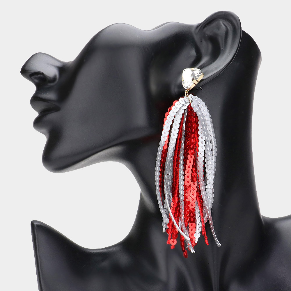 Triangle Stone Cluster Pointed Sequin Tassel Dangle Gameday Earrings