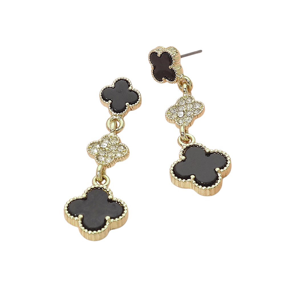 • Elegant drop earrings designed with linked quatrefoil motifs for a graceful, eye-catching silhouette. This refined style adds movement and shine, making it ideal for everyday wear or special occasions. A versatile accessory that pairs beautifully with modern outfits, classic looks, and curated jewelry collections for boutiques and gifting displays.