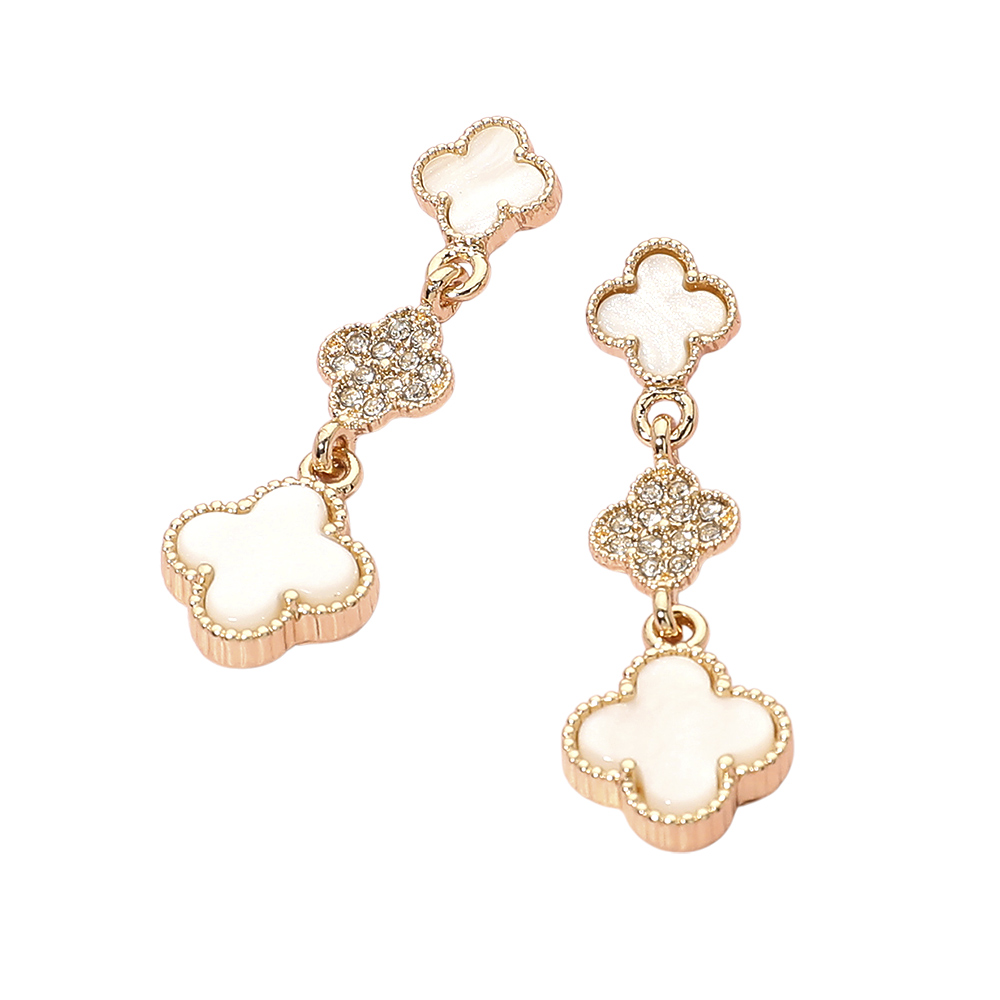 Details • Size : 0.6" X 1.8" • Post Back • Elegant drop earrings designed with linked quatrefoil motifs for a graceful, eye-catching silhouette. This refined style adds movement and shine, making it ideal for everyday wear or special occasions. A versatile accessory that pairs beautifully with modern outfits, classic looks, and curated jewelry collections for boutiques and gifting displays. • Lead and Nickel Compliant
