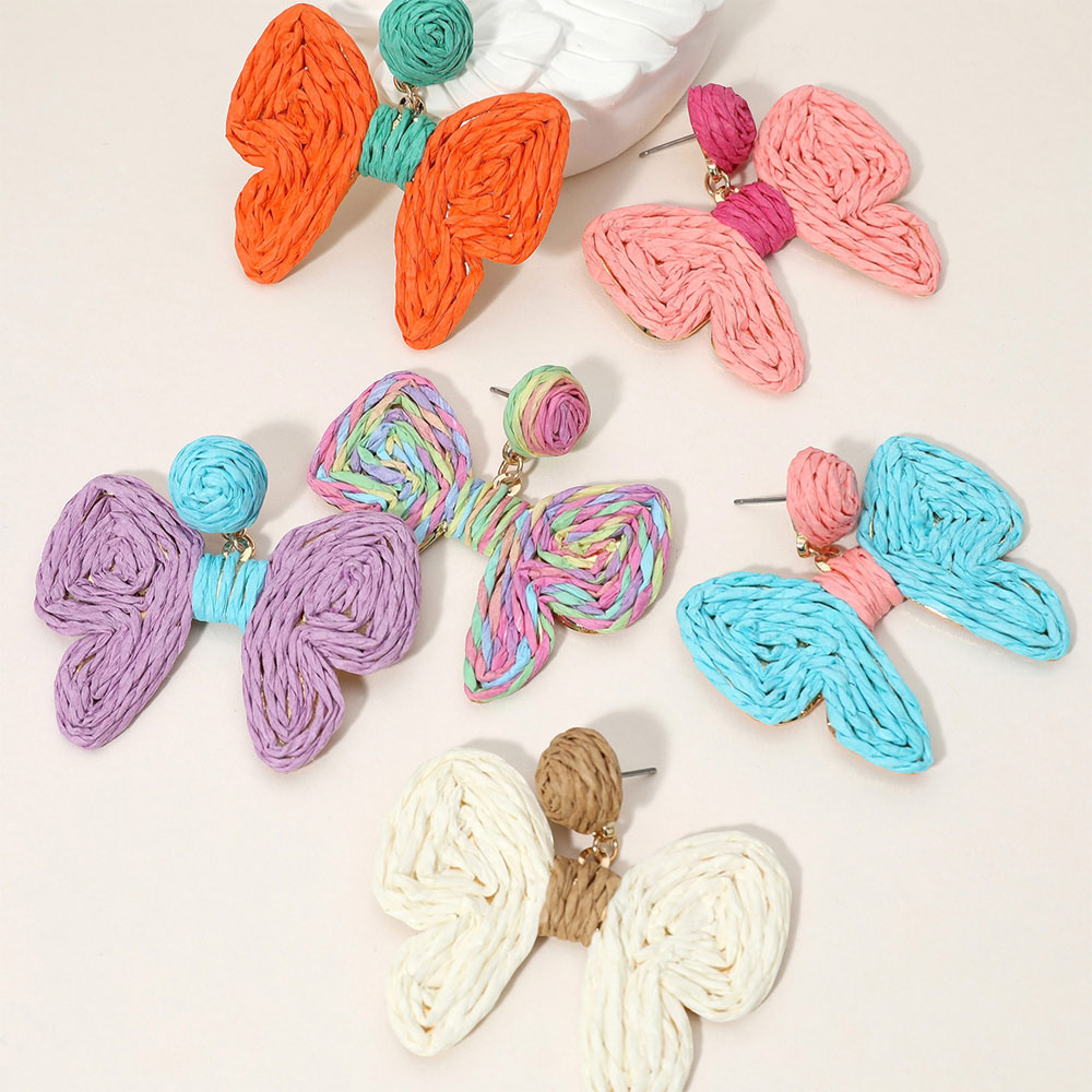 Details • Size : 2.1" X 2" • Post Back • Unique bow-shaped statement earrings with a handwoven look. Lightweight and stylish, perfect for adding a playful, casual-chic vibe to your outfit. Ideal for everyday wear or relaxed weekend looks. • Lead and Nickel Compliant