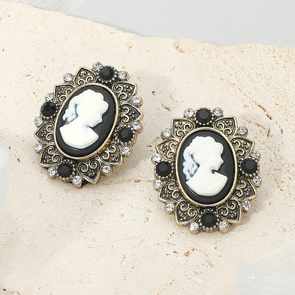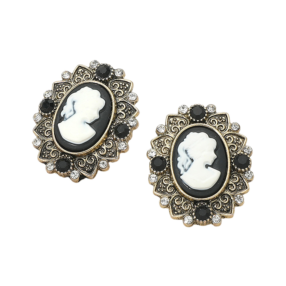 • Add a touch of timeless elegance with these vintage cameo oval stud earrings featuring an ornate frame and intricate detailing. Perfect for classic or formal looks, these earrings capture antique-inspired charm that complements both modern and traditional styles beautifully.