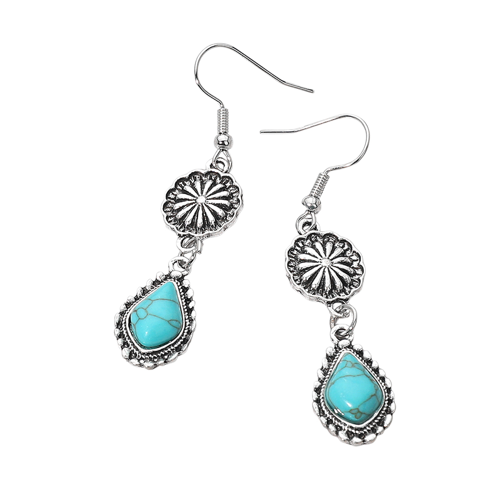 Details • Size : 0.5" X 2.3" • Fish Hook Back • These teardrop floral dangle earrings blend intricate detailing with a graceful drop silhouette. Featuring a delicate floral motif and teardrop design, they bring a refined yet bohemian charm, making them an ideal choice for adding a touch of elegance to casual or dressy looks. • Lead and Nickel Compliant