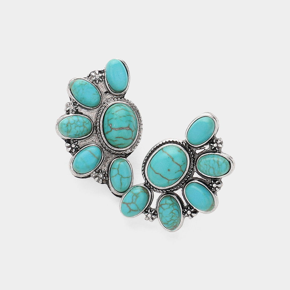• Stunning stud earrings featuring clustered turquoise ovals in antique silver settings. A bold and elegant choice for boho and Southwestern-inspired styles.