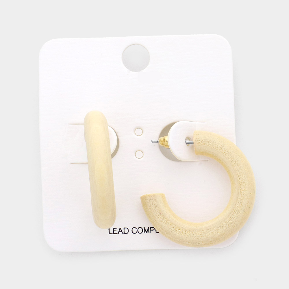 Geometric Hammered Metal Wooden Disc Dangle Earrings
