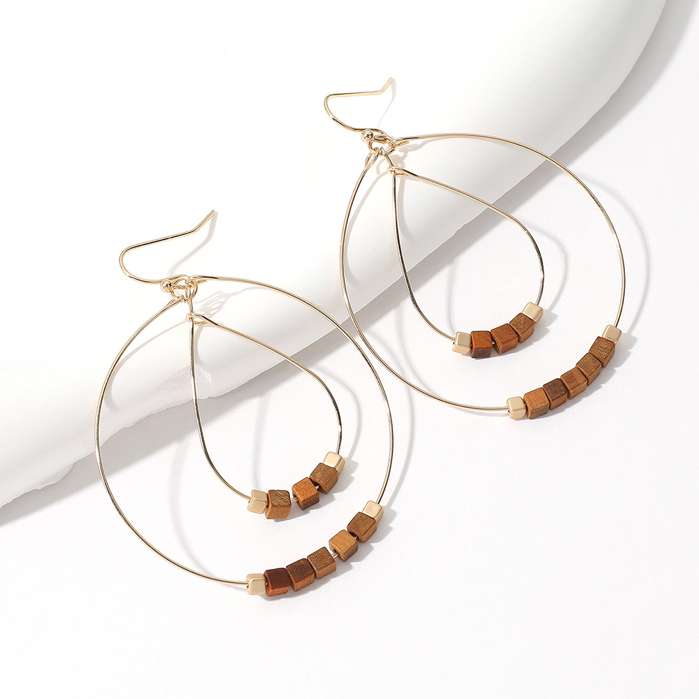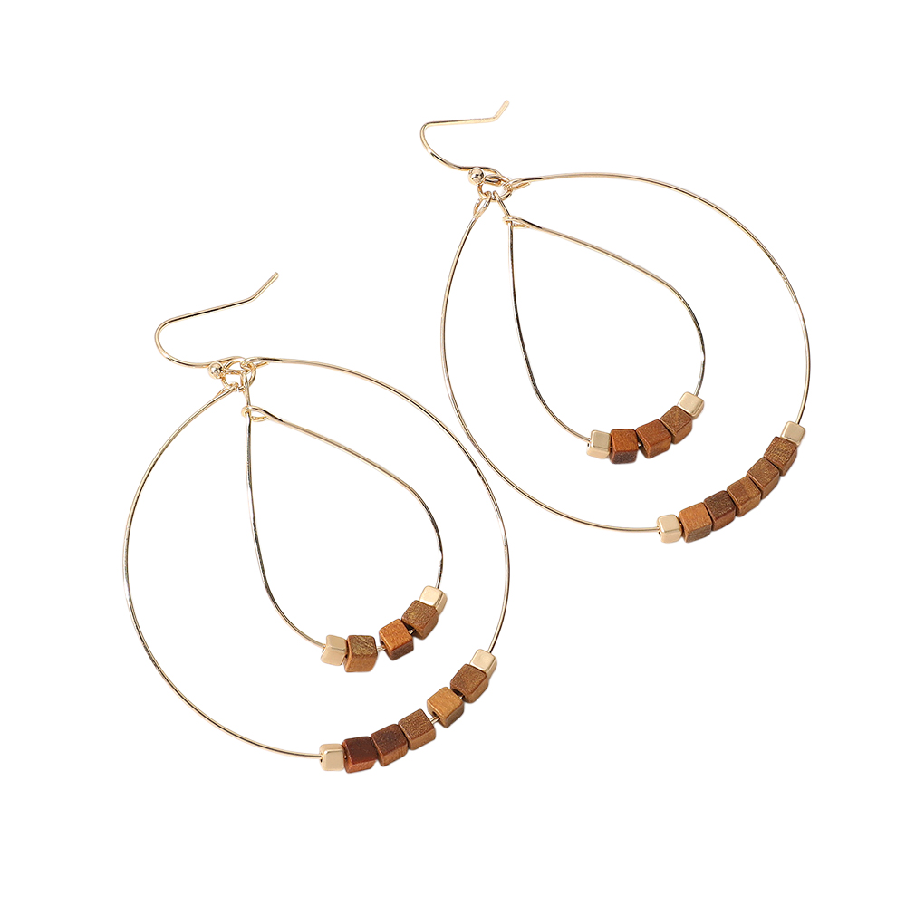 Details • Size : 1.75" X 2.25" • Fish Hook Back • Modern double hoop earrings accented with square cube beads for a minimalist yet eye-catching look. Lightweight and versatile for everyday wear. • Lead and Nickel Compliant