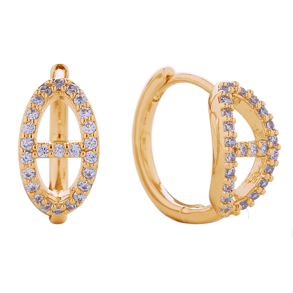• Stylish oval hoop earrings encrusted with sparkling cubic zirconia in a pavĂ© setting. Featuring a unique cross-bar detail, these earrings combine elegance and modern charm, perfect for dressing up special occasions or adding brilliance to everyday looks.