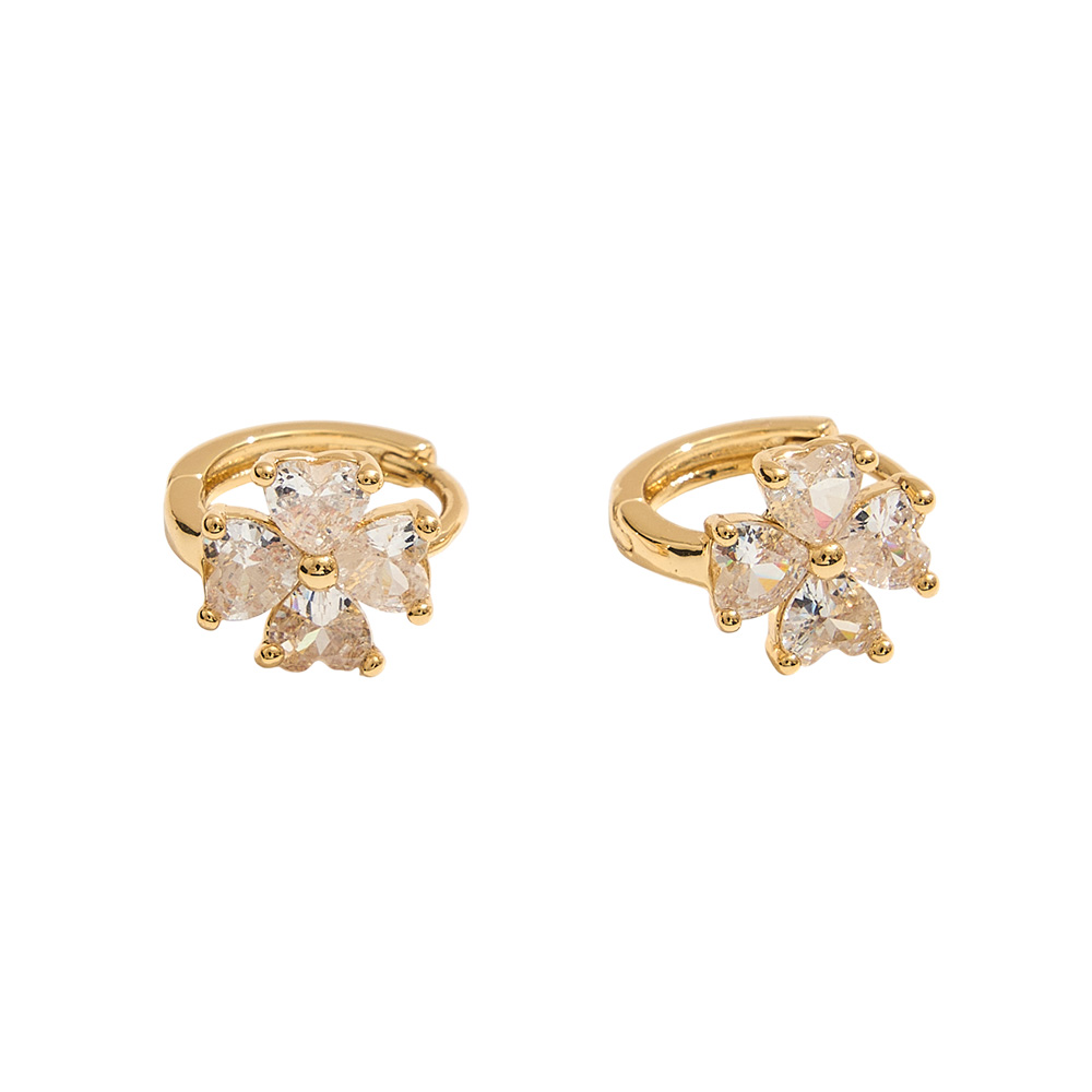 14K Gold Dipped CZ Floral Stone Mini Huggie Hoop Earrings 14K Gold Dipped CZ Floral Stone Mini Huggie Hoop Earrings