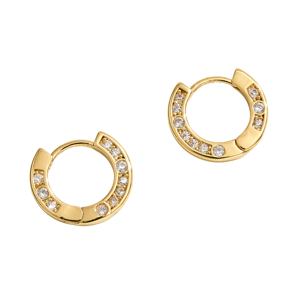 14K Gold Dipped CZ Stone Paved Huggie Hoop Earrings