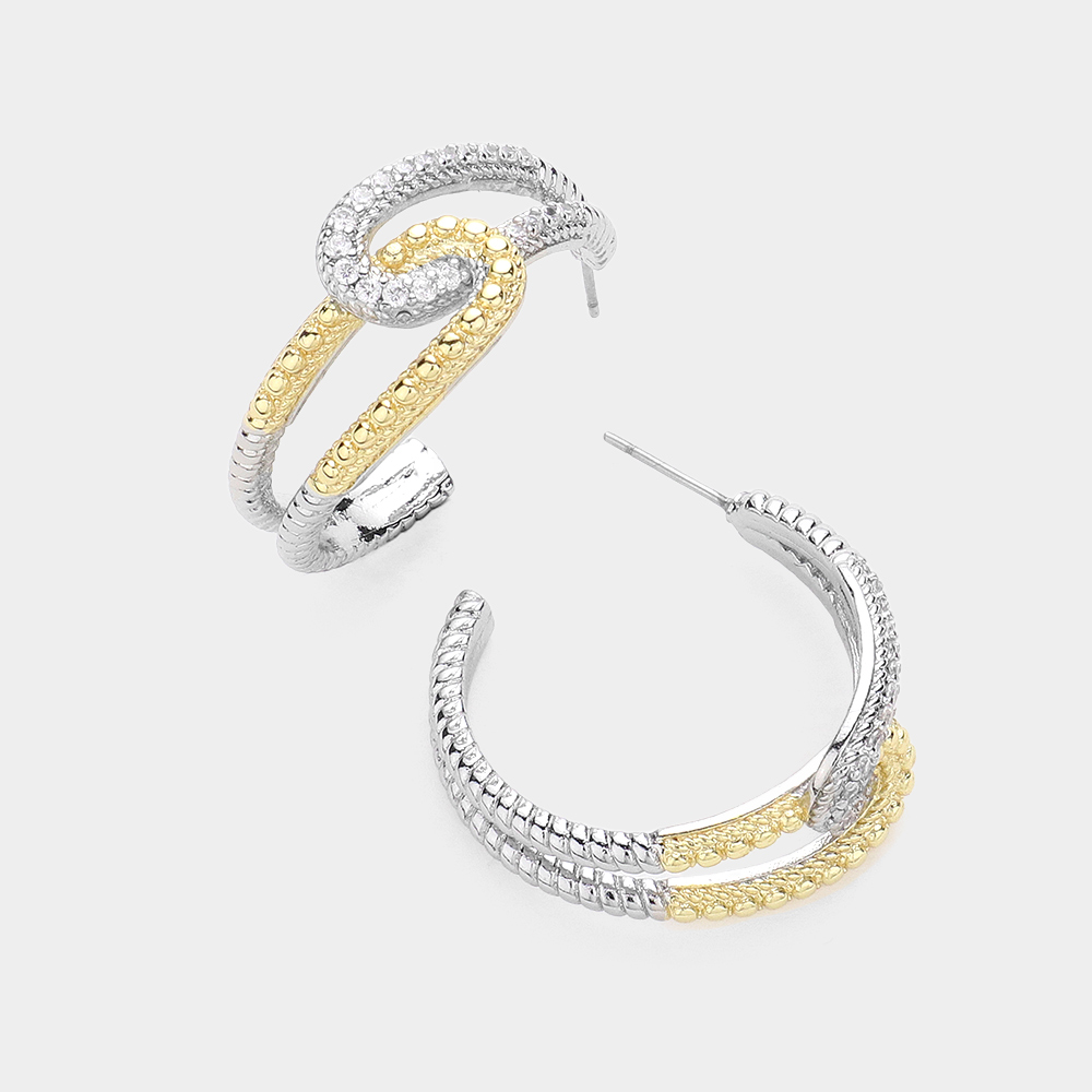 14K Gold Plated Two Tone Textured Hoop Earrings